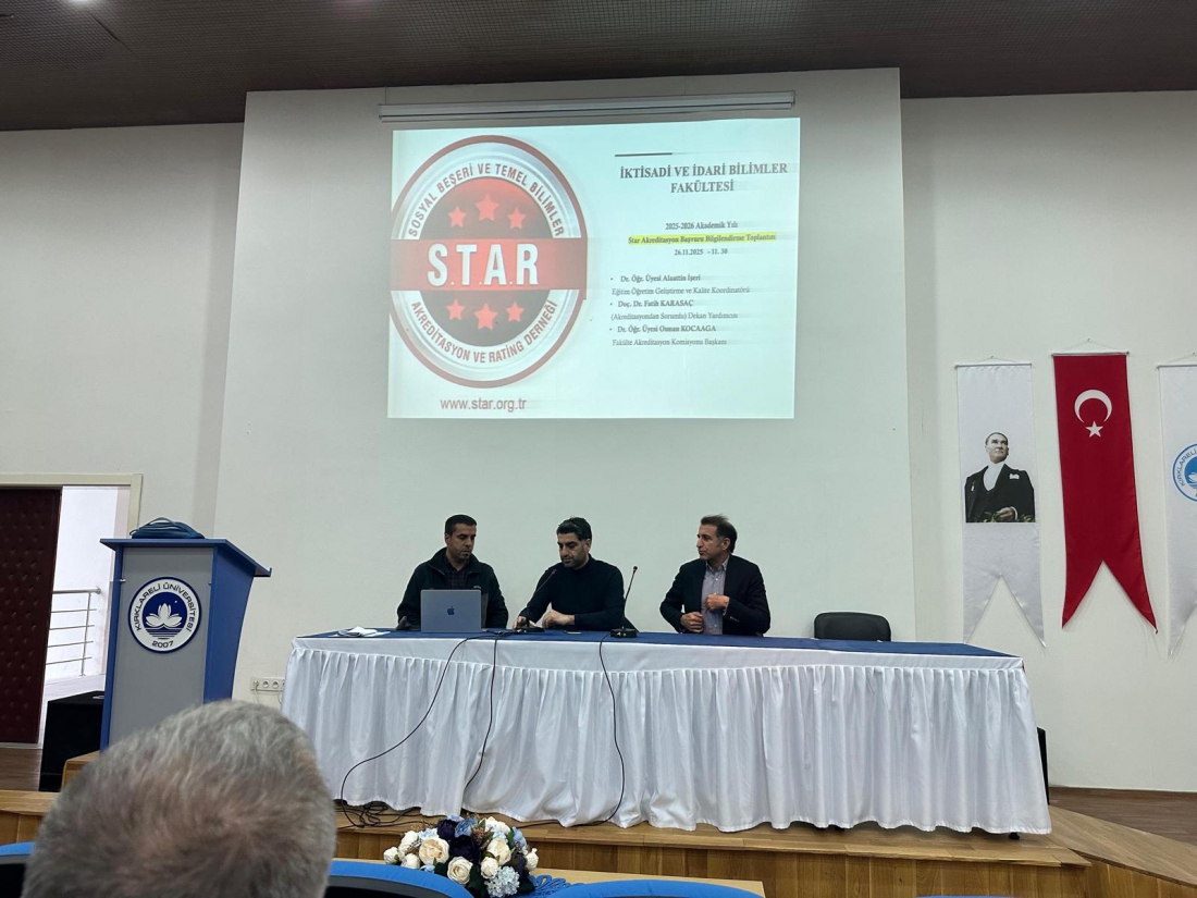 Ardından söz alan Dekan Yardımcısı Dr. Öğr. Üyesi Fatih Karasaç, 2022 yılında İşletme ve Siyaset Bilimi ve Kamu Yönetimi bölümleriyle başlayan akreditasyon sürecinin, bu yıl itibarıyla Uluslararası İlişkiler, Çalışma Ekonomisi ve Endüstri İlişkileri ve İktisat bölümleriyle devam ettiğini ifade etti.